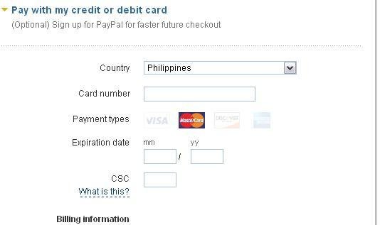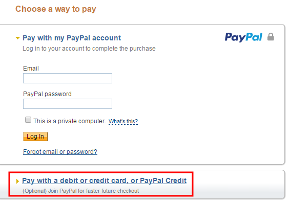 Paypal accep both paypal & credit card (Screenshot of paypal payment method below)